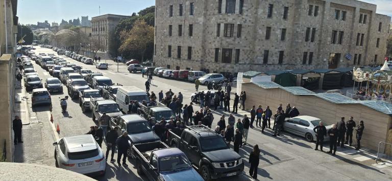 Στην πλατεία του Δημαρχείου που έφτασαν με τα αγροτικά αυτοκίνητά τους συναντήθηκαν με τον αναπληρωτή περιφερειάρχη Απόστολο Ασπράκη, τον αντιπεριφερειάρχη Φιλίμονα Ζαννετίδη και το δήμαρχο Ρόδου Αλέξανδρο Κολιάδη.