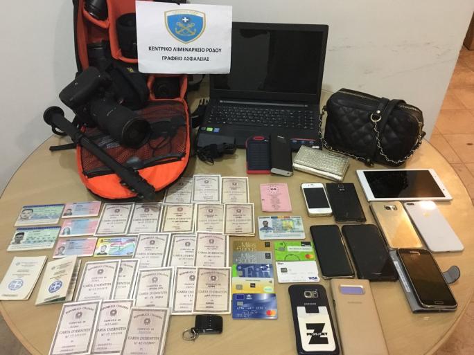 Συλλήψεις αλλοδαπών στη Ρόδο-Για κατοχή πλαστών εγγράφων, σύσταση εγκληματικής οργάνωσης και διακεκριμένες περιπτώσεις κλοπής, συνελήφθησαν τρεις (03) αλλοδαποί, ηλικίας 25, 24 και 21 ετών, απογευματινές ώρες χθες, από στελέχη του γραφείου Ασφάλειας του Κεντρικού Λιμεναρχείου Ρόδου, στο λιμάνι Ακαντιάς Ρόδου. -Συγκεκριμένα κατόπιν σωματικής έρευνας που διενεργήθηκε στους ανωτέρω, πριν τον απόπλου Ε/Γ-Ο/Γ πλοίου, βρέθηκε πλήθος πλαστών εγγράφων και ηλεκτρονικών συσκευών (φορητός Η/Υ, συσκευές κινητής τηλεφωνίας, συσκευές παρεμβολής κλειδαριών Ι.Χ.Ε). Ακολούθησε νομότυπη έρευνα στο δωμάτιο ξενοδοχείου που διέμεναν, κατά την οποία εντοπίστηκαν επιπλέον πλαστά έγγραφα και κάρτες τραπεζικών αναλήψεων έτερων ατόμων.