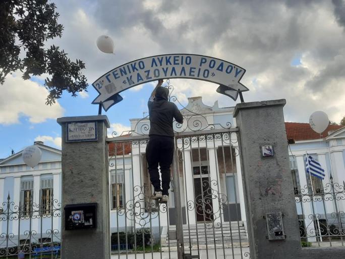 - Την Πέμπτη 28/01, η συντονιστική επιτροπή μαθητών Ρόδου πήρε απόφαση να δράσει με τον συμβολικό «στολισμό» του ΕΠΑΛ στην Ζέφυρο, των ΓΕΛ «Καζούλειο» και «Καπνοβιομηχανία» με μπαλόνια που είχαν αναγραμμένα αιτήματα και συνθήματα που αγκαλιάζει όλη εκπαιδευτική κοινότητα. Οι πρωτοφανείς αυτές συνθήκες που βιώνουμε καθημερινά δεν μας αφήνουν άλλη επιλογή απ’ την κλιμάκωση του αγώνα έως ότου τα δίκαια αιτήματα μας γίνουν αποδεκτά. Την 01/2 όπως έχει γνωστό θα ανοίξουν τα σχολεία της δευτεροβάθμιας εκπαίδευσης, χωρίς όμως να έχει παρθεί κανένα ουσιαστικό μέτρο για την προστασία των μαθητών και εκπαιδευτικών από την διασπορά του ιού, ούτε για τα πάγια αιτήματα τους προ-κορωνοϊού.