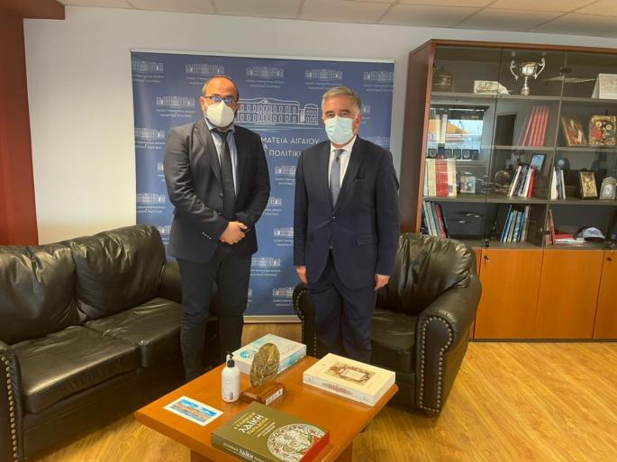 - Συνάντηση με τον Γενικό Γραμματέα Αιγαίου και Νησιωτικής Πολιτικής Μανώλη Κουτουλάκη είχε ο Κοσμήτορας της Βουλής και Βουλευτής Δωδεκανήσου Βασίλειος Νικόλαος Α. Υψηλάντης για θέματα που αφορούν τη νησιωτικότητα αλλά και για τις παρεμβάσεις που θα γίνουν από πλευράς του υπουργείου στα νησιά μας . Ο Βασίλης Α. Υψηλάντης ευχαρίστησε τον κ. Κουτουλάκη για το μεγάλο ενδιαφέρον του για να προχωρήσουν σημαντικές παρεμβάσεις στα νησιά μας.