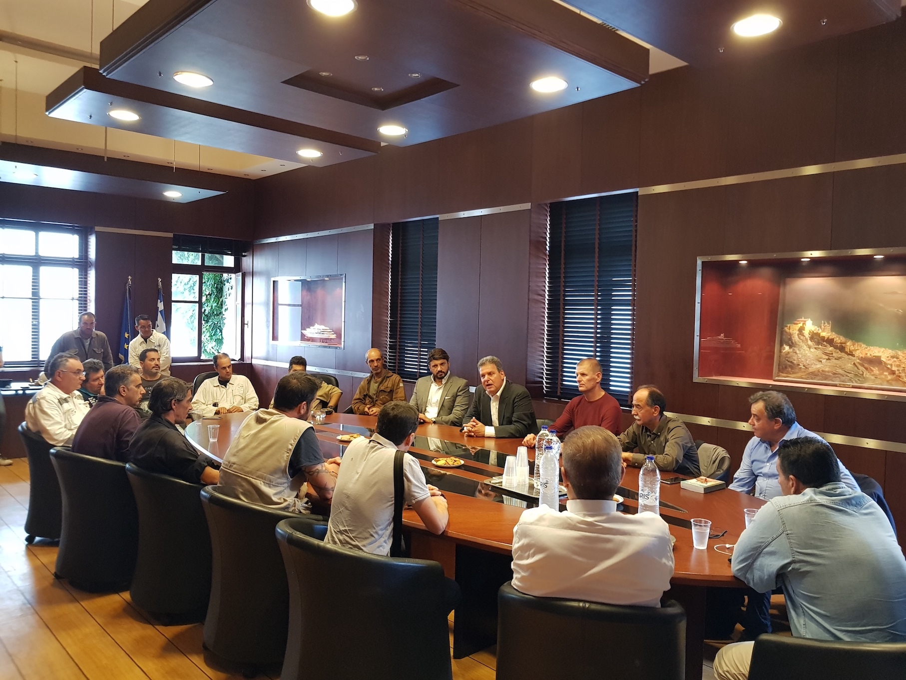 Δελτίο Τύπου της «Συμμαχίας Νοτίου Αιγαίου» • Εθιμοτυπική συνάντηση του Επικεφαλής της Παράταξης «Συμμαχία Νοτίου Αιγαίου» κ Μανώλη Γλυνού με τον Δήμαρχο Σύρου κ Γιώργο Μαραγκό. • Ενημέρωση του κ Γλυνού για τις εξελίξεις στο Ναυπηγείο Νεωρίου από το Σύλλογο Εργαζομένων. Σειρά επαφών και συναντήσεων είχε στην Σύρο ο υποψήφιος περιφερειάρχης Νοτίου Αιγαίου, επικεφαλής της παράταξης «Συμμαχία Νοτίου Αιγαίου» κ. Μανώλης Γλυνός, ο οποίος συνεχίζει την περιοδεία του στις Κυκλάδες. Μετά την παρουσίαση των αρχών της παράταξης «Συμμαχία Νοτίου Αιγαίου» στα ΜΜΕ των Κυκλάδων, ο υποψήφιος περιφερειάρχης κ. Μανώλης Γλυνός, συνοδευόμενος από συνεργάτες του, πραγματοποίησε εθιμοτυπική επίσκεψη στον δήμαρχο Σύρου κ. Γιώργο Μαραγκό. Η συνάντηση έγινε σε θετικό κλίμα και συζητήθηκαν όλα τα ανοιχτά θέματα του νησιού. Στη συνέχεια ο υποψήφιος περιφερειάρχης Νοτίου Αιγαίου, είχε συνάντηση με το διοικητικό συμβούλιο των εργαζομένων στο Ναυπηγείο Νεωρίου, η οποία διεξήχθη σε ιδιαίτερα εγκάρδιο και εποικοδομητικό κλίμα. Από την πλευρά τους, οι εργαζόμενοι παρέθεσαν στον κ. Μανώλη Γλυνό τα προβλήματά τους και ζήτησαν συνδρομή, καθώς όπως είναι γνωστόν, το ιστορικό Ναυπηγείο βρίσκονται σε ένα κρίσιμο, πλην ελπιδοφόρο μεταβατικό στάδιο. Οι εργαζόμενοι έμειναν ικανοποιημένοι από το γεγονός ότι ο κ. Μανώλης Γλυνός ήταν ενημερωμένος για όλες τις εξελίξεις αλλά και για τη διαβεβαίωση που έλαβαν ότι θα είναι δίπλα τους. Παράλληλα ο Επικεφαλής της Περιφερειακής Παράταξης "Συμμαχία Νοτίου Αιγαίου" κ Γλυνός εξέφρασε την πεποίθηση του ότι το Ναυπηγείο του Νεωρίου με τη συνδρομή εργαζομένων, διοίκησης και επενδυτή θα μπορέσουν να επαναλειτουργήσουν επιτυχώς. Ειδικότερα ο κ Γλυνός απευθυνόμενος προς τον Σύλλογο εργαζομένων υπογράμμισε με νόημα: "Οι συνδικαλιστές με φιλότιμο και πνεύμα συνεργασίας όπως εσείς, σε συνδυασμό με μία χρηστή διοίκηση αποτελούν τους καλύτερους "μετόχους" μίας εταιρίας. Η υπεύθυνη στάση όλων εν αναμονή της απόφασης της δικαιοσύνης για το σχέδιο εξυγίανσης της επιχείρησης, αποτελεί έμπρακτη απόδειξη ότι οι εργαζόμενοι και στο μέλλον μπορούν και θα συμβάλουν εποικοδομητικά. Οι εξελίξεις στην Νοτιο-Ανατολική Μεσόγειο και ειδικότερα η αξιοποίηση των υδρογονανθράκων, θα αποτελέσει την χρυσή ευκαιρία ώστε το ναυπηγείο του Νεωρίου να αποτελέσει θεμέλιο λίθο στον ενεργειακό σχεδιασμό της χώρας. Υπό τον ομογενή επενδυτή κ Πάνο Ξενοκώστα και το διεθνές ενδιαφέρον, το Νεώριο μπορεί όχι απλά να ανακτήσει σημαντική ναυπηγοεπισκευαστική δραστηριότητα αλλά και να ανταπεξέλθει στον διεθνή ανταγωνισμό από Μάλτα και Τουρκία. " Μετά την Σύρο, ο υποψήφιος περιφερειάρχης Νοτίου Αιγαίου κ. Μανώλης Γλυνός, συνεχίζει την περιοδεία του σε Τήνο, Μύκονο. Από το Γραφείο Τύπου