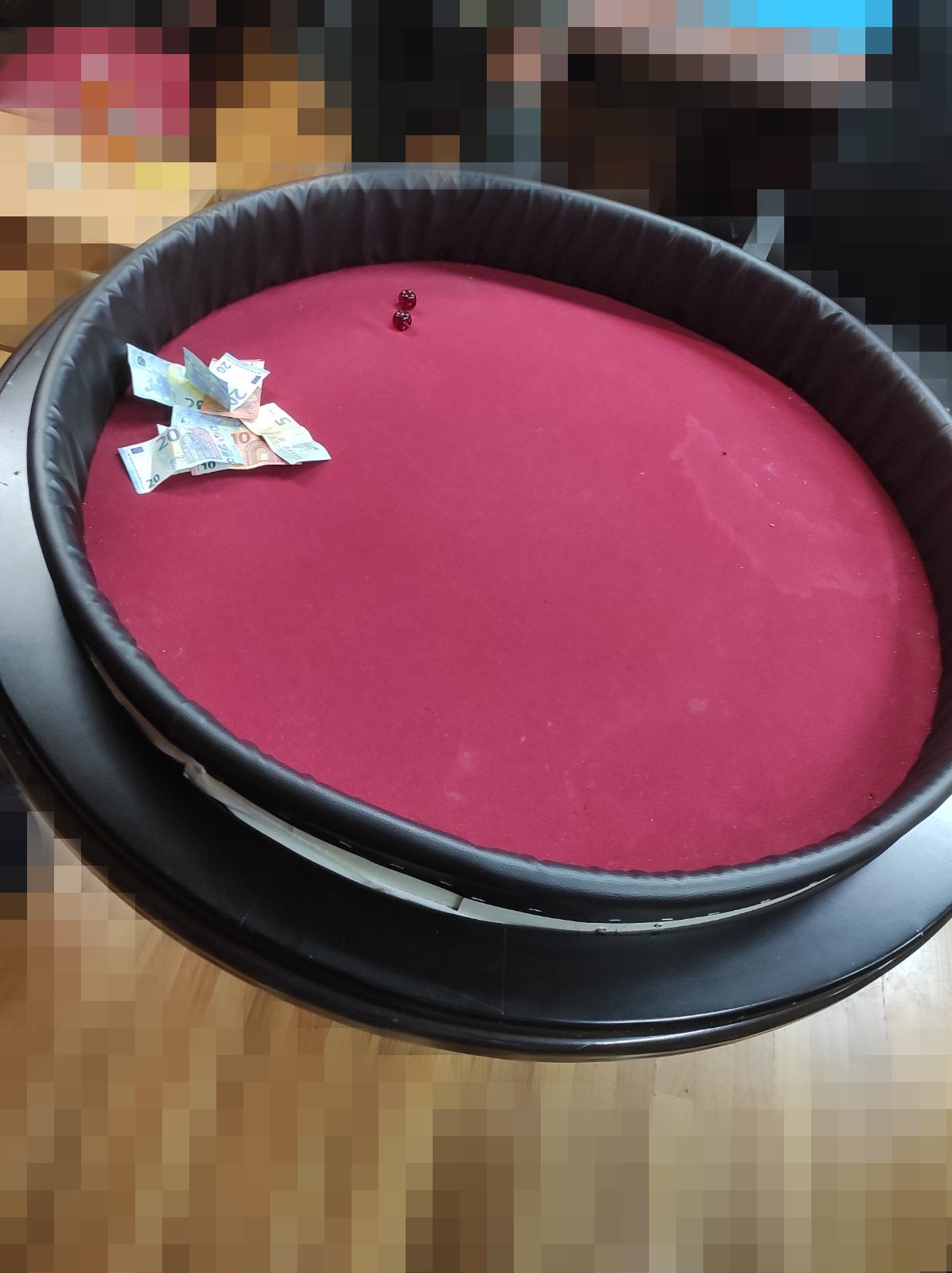 Ειδικότερα, έπειτα από αξιολόγηση στοιχείων πραγματοποιήθηκε αιφνιδιαστικός αστυνομικός έλεγχος κατά τον οποίο διαπιστώθηκε ότι η υπεύθυνη της επιχείρησης είχε διοργανώσει τη διεξαγωγή του παράνομου παιγνίου «μπαρμπούτι», το οποίο βρισκόταν σε εξέλιξη σε ειδικά διαμορφωμένο τραπέζι όπου συμμετείχαν σ’ αυτό πέντε παίκτες χρησιμοποιώντας ζάρια και προβαίνοντας σε πονταρίσματα με χρήματα.