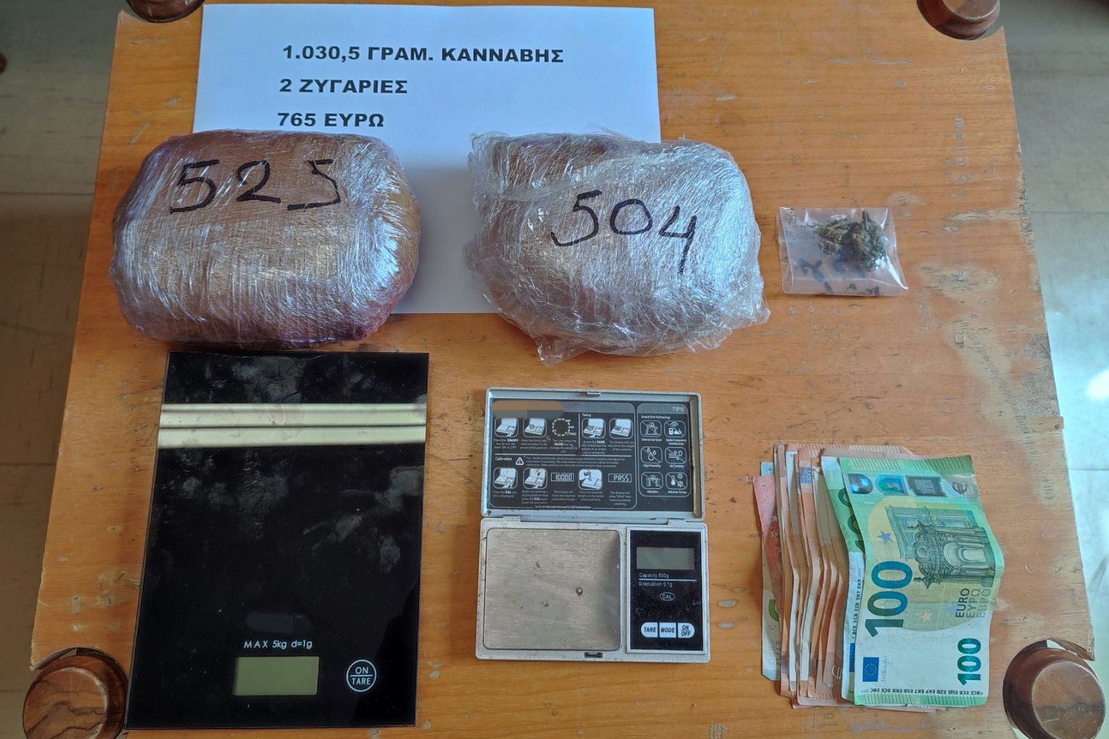- Κατασχέθηκαν -1- κιλό κάνναβης, -2- ζυγαριές και 765€