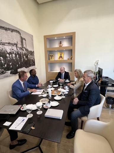 Στη συνάντηση όπου συμμετείχαν ο Αντιδήμαρχος Επικοινωνίας, Τύπου και Εθιμοτυπίας, κ. Κώστας Ταρασλιάς, η κυρία Δέσποινα Χατζηδιάκου, Σύμβουλος του Δημάρχου σε θέματα πολιτισμού, αποδήμων και διεθνών σχέσεων και ο κ. Γιάννης Δημόπουλος, Διευθύνων Σύμβουλος του Αναπτυξιακού Οργανισμού του Δήμου Ρόδου «Κολοσσός 2047», συζητήθηκε εκτενέστερα η στήριξη της λειτουργίας του Κέντρου Σύγχρονης Κεραμικής που φιλοξενείται στο Κατάλυμα της Γαλλίας στη Μεσαιωνική Πόλη, από το Δήμο Ρόδου.