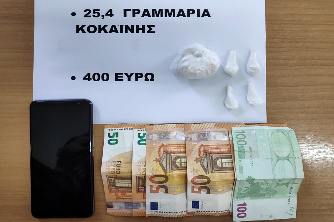 - Κατασχέθηκαν 25,4 γρ. κοκαΐνης, 400€ και κινητό τηλέφωνο