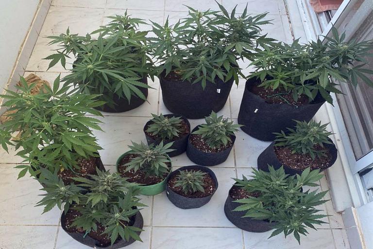 • 11 φυτά κάνναβης, ύψους έως 40 εκατοστά τα οποία καλλιεργούσε μέσα σε γλάστρες που βρισκόταν σε μπαλκόνι