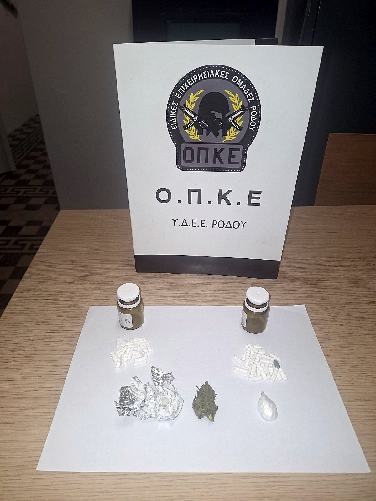 Σύλληψη ημεδαπού για ναρκωτικά στη Ρόδο-Την 19-12-2025 το βράδυ συνελήφθη στη Ρόδο, από περιπολούντες αστυνομικούς της Ο.Π.Κ.Ε., 54χρονος ημεδαπός στην κατοχή του οποίου βρέθηκαν και κατασχέθηκαν -46- ναρκωτικά δισκία-φαρμακευτικά δισκία, χωρίς ιατρική συνταγή, -1,38- γραμμ. κάνναβης και -1,38- γραμμ.