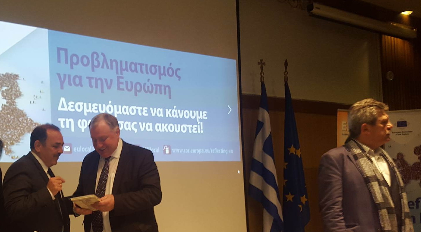 ΔΕΛΤΙΟ ΤΥΠΟΥ-Θέμα : Τη στήριξη του Προέδρου της Επιτροπής Περιφερειών για τους μειωμένους συντελεστές ΦΠΑ ζήτησε ο Δήμαρχος Ρόδου. Στα πλαίσια του συνεδρίου, που διοργάνωσε η Ευρωπαϊκή Επιτροπή Περιφερειών με την Ε.Ε.Τ.Α. Α. στην Αθήνα την 1-3-2018, με θέμα : ΤΟ ΜΕΛΛΟΝ ΤΗΣ ΕΥΡΩΠΗΣ, ο δήμαρχος Ρόδου και μέλος της επιτροπής Περιφερειών είχε κατ ιδίαν συνάντηση με τον πρόεδρο της Ευρωπαϊκής Επιτροπής και επί 38 χρόνια Βέλγο πολιτικό Karl – Heinz Lambertz. Στη συνάντηση, ο δήμαρχος ζήτησε τη στήριξη του προέδρου και της επιτροπής Περιφερειών κατά τη συζήτηση της αναφοράς που υπέβαλαν οι Περιφερειακές Ενώσεις Δήμων Νοτίου και Βορείου Αιγαίου στη Κομισιόν και στις ειδικές επιτροπές του Ευρωπαϊκού Κοινοβουλίου για την κατάργηση των μειωμένων συντελεστών ΦΠΑ, η οποία θα συζητηθεί τους επόμενους μήνες. Ο πρόεδρος δήλωσε τη στήριξη του προς τα νησιά του Αιγαίου και ο δήμαρχος αφού τον ευχαρίστησε τον προσκάλεσε να πραγματοποιήσει ανάλογη εκδήλωση για την Ευρώπη στη Ρόδο, την οποία και αποδέχτηκε, δηλώνοντας φίλος και λάτρης των νησιών του Αιγαίου.