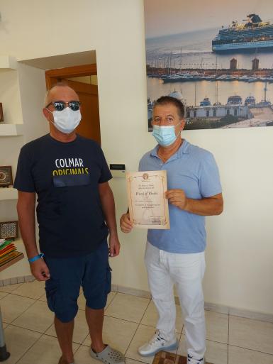 Στην τελετή βράβευσης του Αυγούστου ο κ. Βυρίνης απένειμε τιμητικές διακρίσεις στους Γάλλους, κ. Herrmann Hubert  που έχει έλθει πρώτη φορά στη Ρόδο πριν από 35 χρόνια και από τότε έχει επισκεφθεί το νησί 55 φορές και διαμένει στο ξενοδοχείο Esperos Mare στο Φαληράκι, καθώς και στον κ. Chtistophe Kapps ο οποίος έχει επισκεφθεί το νησί 30 φορές και διαμένει επίσης στο ίδιο ξενοδοχείο.