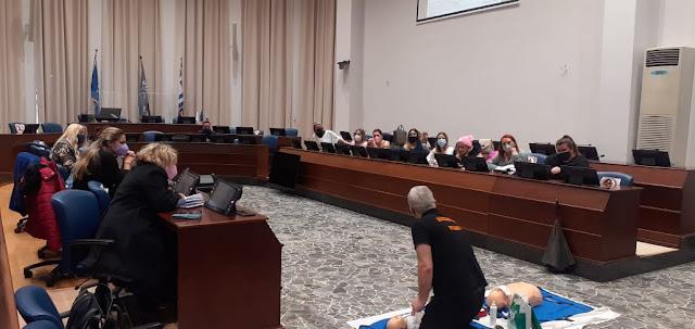 Η εκπαίδευση έλαβε μέρος στις 2 και 9 Μαρτίου, στην αίθουσα συνεδριάσεων του Δημοτικού Συμβουλίου, και είχε ως αντικείμενο της, την αναγνώριση απειλητικών για τη ζωή καταστάσεων και την αντιμετώπιση τους από το προσωπικό του ''Βοήθεια Στο Σπίτι''.