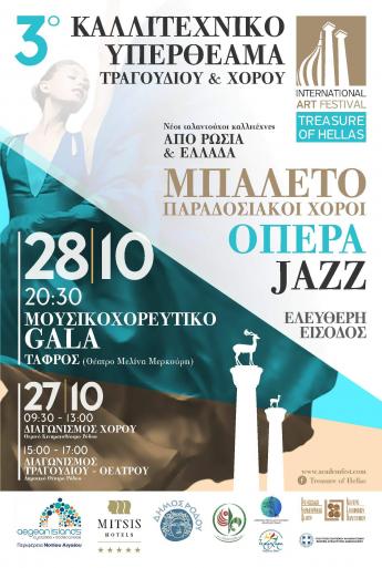 ΔΕΛΤΙΟ ΤΥΠΟΥ-Η Ακαδημία Τεχνών και Εκπαιδευτικών Καινοτομιών της Μόσχας, η Αντιδημαρχία Πολιτισμού Δήμου Ρόδου, ο Δ.Ο.Π.Α.Ρ. και η Περιφέρεια Νοτίου Αιγαίου συνδιοργανώνουν για τρίτη συνεχόμενη χρονιά το Φεστιβάλ Νέων Καλλιτεχνών “ Treasure Of Hellas” Απώτερος σκοπός του φεστιβάλ είναι η δημιουργία ιδανικών συνθηκών για έκφραση, ανταλλαγή πολιτισμικών στοιχείων, καλλιέργεια ευγενούς άμιλλας και ανάδειξη ταλέντων στο χώρο του χορού, της υποκριτικής και της φωνητικής. Όλα τα παραπάνω συμβαίνουν τόσο μέσα από το διαγωνιστικό κομμάτι του φεστιβάλ, όσο και μέσα από το κομμάτι των εργαστηρίων (masterclasses). Στο φεστιβάλ καλούνται και οι σχετικές σχολές και ωδεία του νησιού μας, τόσο ως θεατές, αλλά και ως συμμετέχοντες. Η κριτική καλλιτεχνική επιτροπή έρχεται από την Ρωσία μαζί με 250 παιδιά που θα συμμετάσχουν στο διαγωνισμό. Επίκεντρο του Φεστιβάλ είναι το φαντασμαγορικό γκαλά το οποίο θα πραγματοποιηθεί την Κυριακή 28 Οκτωβρίου 2018 , στις 20:30 στο Θέατρο Μεσαιωνικής Τάφρου «ΜΕΛΙΝΑ ΜΕΡΚΟΥΡΗ» με δωρεάν είσοδο για το κοινό. Μέγας χορηγός του φεστιβάλ Mitsis Grand Hotel. Ευχαριστούμε την Εφορεία Αρχαιοτήτων Δωδεκανήσου