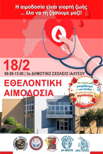 Την Τετάρτη 18 Φεβρουαρίου 2026, το 3ο Δημοτικό Σχολείο Ιαλυσού δείχνει τον δρόμο της εθελοντικής αιμοδοσίας.