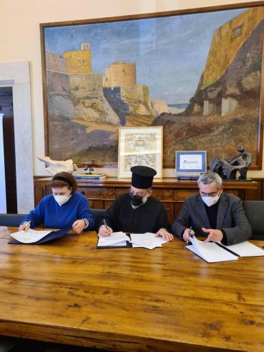 Την Προγραμματική Σύμβαση συνυπέγραψαν η Υπουργός Πολιτισμού και Αθλητισμού, Λίνα Μενδώνη, ο Περιφερειάρχης Νοτίου Αιγαίου, Γιώργος Χατζημάρκος και ο  Σεβασμιότατος Μητροπολίτης Ρόδου, κ.κ. Κύριλλος.