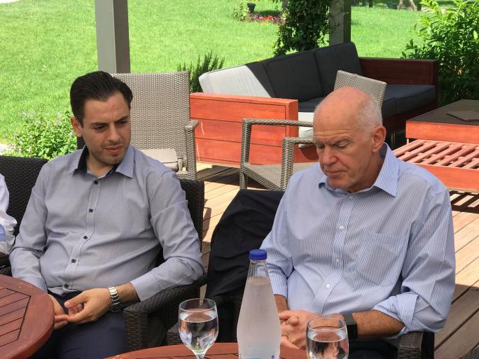Απο χθες βρίσκεται στη Ρόδο ο πρώην πρωθυπουργός Γιώργος Παπανδρέου για το Συμπόσιο της Σύμης που θα διεξαχθεί φέτος στο νησί μας. Χθες το απόγευμα είχε συνεργασία με τον δήμαρχο Ρόδου Φώτη Χατζηδιάκο και την δημοτική πλειοψηφία. Συζητήθηκαν θέματα της αυτοδιοίκησης καθώς και το προσφυγικό. Στη συνέχεια οι της δημοτικής αρχής έκαναν το τραπέζι στο κ. Παπανδρέου σε ταβέρνα της Μεσαιωνικής Πόλης. Σήμερα το πρωί συναντήθηκε με τη Νομαρχιακή Επιτροπή του ΚΙΝΑΛ και του ΚΙΔΗΣΟ στο Ρόδος Παλάς. Η εναρξη του Συμποσίου της Σύμης που θα συμμετέχουν και φέτος εξέχουσες προσωπικότητες απο όλο τον κόσμο θα γίνει την Κυριακή στο Καστέλο. Το κεντρικό θέμα που θα απασχολήσει το φετινό συμπόσιο έχει τίτλο «Δαμάζοντας την Παγκοσμιοποίηση: Η Ατζέντα για τα επόμενα είκοσι χρόνια».