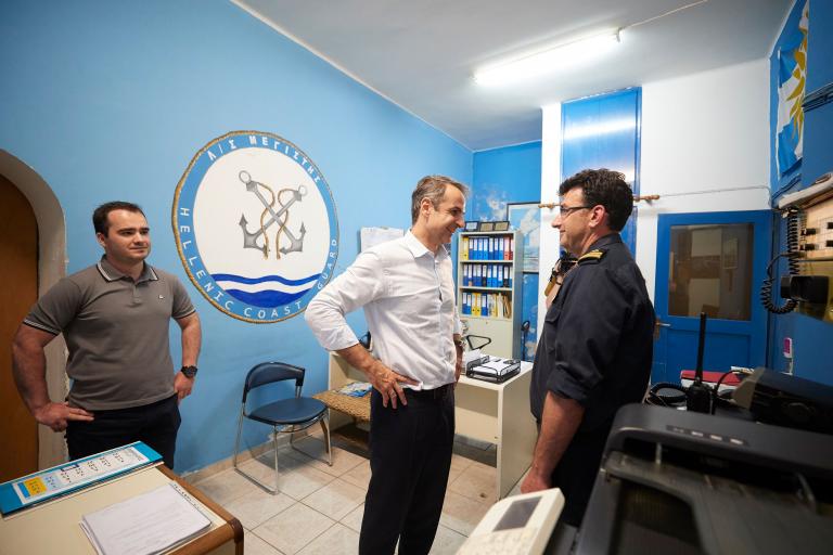 Τέλος, ο Πρόεδρος της Νέας Δημοκρατίας είχε σύντομη συνομιλία και με στελέχη του λιμενικού σώματος που ετοιμάζονταν για τη νυχτερινή περιπολία τους.