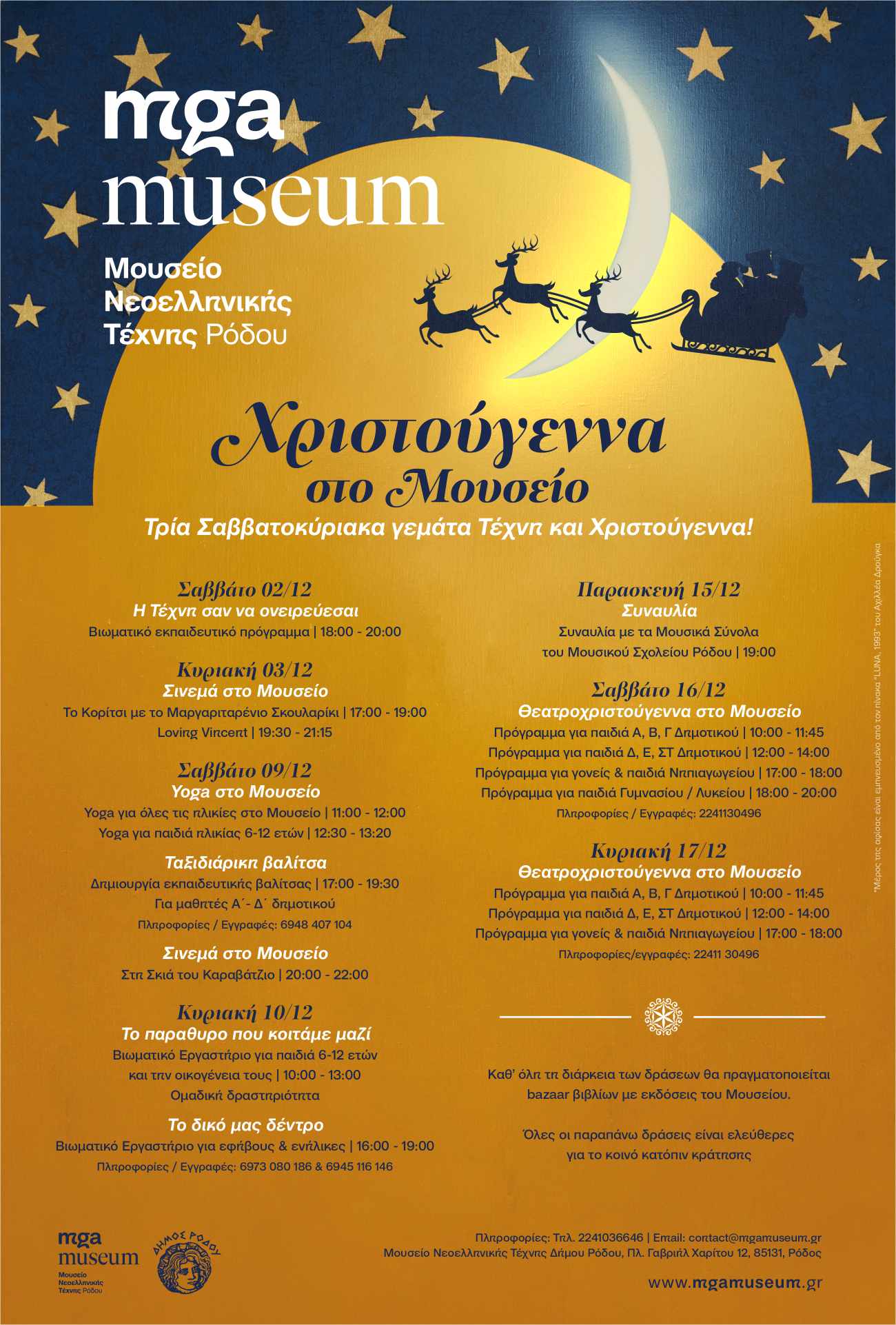 Το Μουσείο Νεοελληνικής Τέχνης Ρόδου σχεδίασε και φέτος ιδιαίτερα εορταστικά εκπαιδευτικά προγράμματα και δράσεις, προκειμένου να μεταφέρει τη μαγεία των εορτών σε μικρούς και μεγάλους μέσα από την τέχνη.