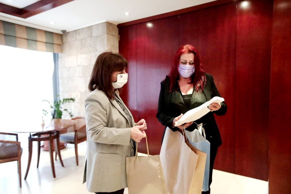 - Ανθρώπινη, προσιτή, με ισχυρή προσωπικότητα, που εμπνέει απεριόριστη εμπιστοσύνη, η Πρόεδρος της Ελληνικής Δημοκρατίας Κατερίνα Σακελλαροπούλου, κατά την επίσκεψή της στη Ρόδο, τίμησε με συνάντηση τα παροικιακά σωματεία, που εκπροσωπήθηκαν από την Πρόεδρο της Ένωσης Καλυμνίων Ρόδου Μαρία Βάλλα. Η συνάντηση, πραγματοποιήθηκε στο φουαγιέ του ξενοδοχείου Meditteranean.