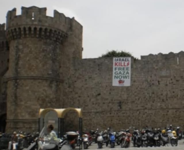 Επιστρατεύτηκαν ΟΛΟΙ. Μαξίμου, Υπουργείο Εξωτερικών, Υπουργείο Εσωτερικών Υπουργείο Ναυτιλίας και Νησιωτικής Πολιτικής, Πρεσβείες και Προξενεία για να μπορέσουν να δώσουν τα διαπιστευτήρια του πιστού συμμάχου. Κινητοποίησαν και όλους τους τοπικούς παράγοντες, από Περιφέρεια, Εργατικό Κέντρο, τουριστικά συνδικαλιστικά σωματεία και φορείς μέχρι βολικούς κονδυλογράφους για να δημιουργήσουν το απαραίτητο κλίμα κοινωνικού φόβου. Τέτοια συμπαράσταση δεν ματαείδαμε. Όλους εμάς που παλεύουμε για την Ειρήνη, για την Αλληλεγγύη των λαών, για την προστασία της ζωής των ανθρώπων από το ξεκλήρισμα της Ισραηλινής κυβέρνησης μας λένε ρατσιστές. Και θα εφαρμόσει λέει ο κύριος Χρυσοχοΐδης τον αντιρατσιστικό νόμο πάνω σ’ αυτές τις αρχές και τις δράσεις μας.!!! Τι άλλο θα μπορούσε να ονομαστεί φασισμός; Ολα αυτά για ποιο λόγο; Γιατί θέλουμε να υποδεχτούμε τους Ισραηλίτες όχι με Μελεκούνια και νησιώτικους χωρούς. Α
