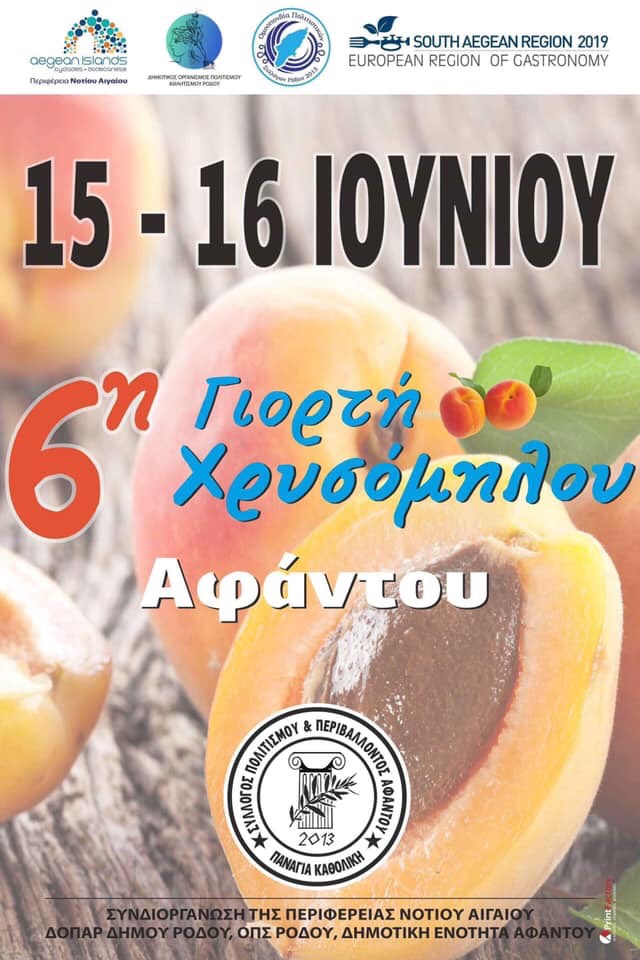 Ο Σύλλογος Πολιτισμού και Περιβάλλοντος «Παναγιά Καθολική» Αφάντου, σας προσκαλεί στη γιορτή «Χρυσόμηλου» στη Δημοτική Κοινότητα Αφάντου, που θα πραγματοποιηθεί στον προαύλιο χώρο της Ιεράς Μονής Παναγιάς Καθολικής το Σάββατο 15 και την Κυριακή 16 Ιουνίου στις 7μ.μ.