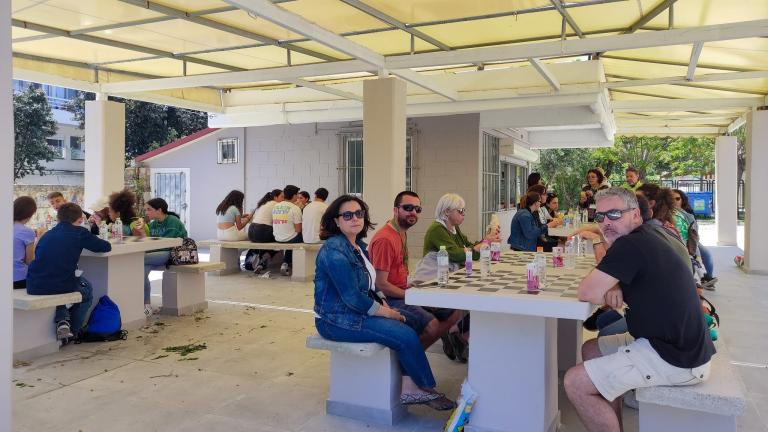 Σειρά είχε η υποδοχή των εταίρων στους χώρους του σχολείου. Μπουφές με τοπικά εδέσματα και λίγη ξεκούραση στο κυλικείο, χαλαρό παιχνίδι στην αυλή του σχολείου, παρουσίαση του σχολικού συγκροτήματος, στην αρχή.
