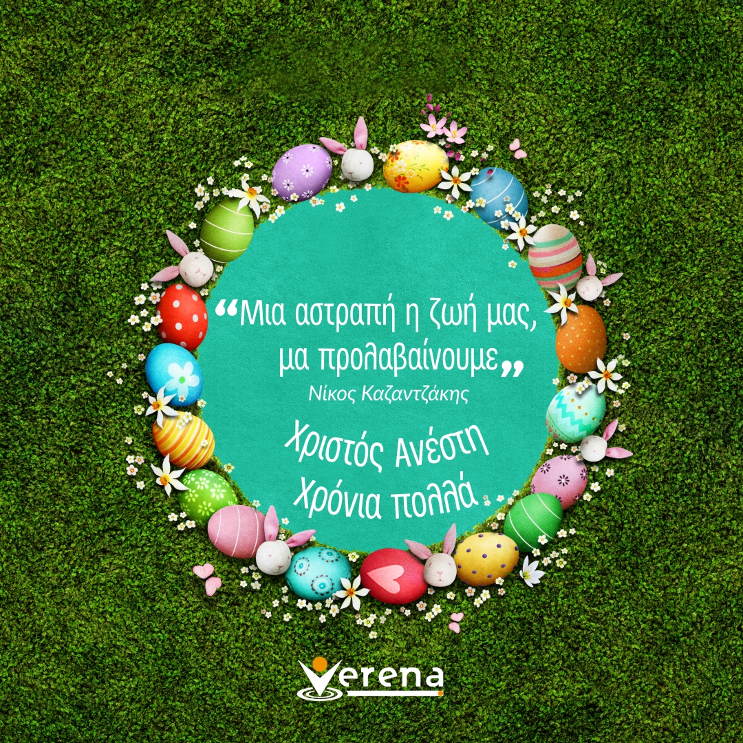 Το vERENA.GR και οι συνεργάτες του σας εύχονται Χριστός Ανέστη! Χρόνια Πολλά! Με υγεία που σήμερα είναι ενα απο τα βασικά ζητούμενα στην ζωή μας. Υγεία, χαρά, ευημερία, μια ζωή στο τώρα και όχι την αναμονή...Και του χρόνου! Ευχή όλων μας να έχουμε δαμάσει και την πανδημία και να έχουμε χαρά μια νέα πορεία, καλύτερη από τις προηγούμενες! Και του χρόνου!
