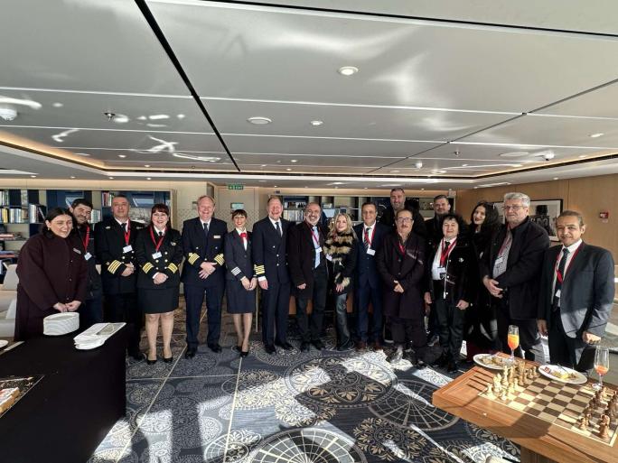 Ο πρόεδρος του Δημοτικού Λιμενικού Ταμείου Ν. Δωδεκανήσου Βασίλης Βαγιανάκης και ο αντιδήμαρχος Επικοινωνίας Γιώργος Πάττας αντάλλαξαν αναμνηστικές πλακέτες και δώρα με τον πλοίαρχο του κρουαζιερόπλοιου, Anders Gillis Steen. Ακολούθησε κοπή βασιλόπιτας, προσφορά του κ. Γεωργιάδη, με το φλουρί να κερδίζει ο ύπαρχος του πλοίου Rolf Fredrik Malmberg, στον οποίο προσφέρθηκε αναμνηστικό δώρο.