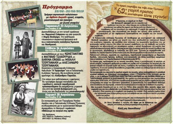 62η ΓΙΟΡΤΗ ΚΡΑΣΙΟΥ ΚΑΙ ΜΟΥΣΤΑΛΕΥΡΙΑΣ ΕΜΠΩΝΑ 2019