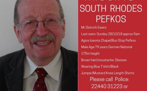 Νεκρός βρέθηκε δυστυχώς σήμερα αργά το μεσημέρι, ο 79χρονος Γερμανός τουρίστας που είχε χαθεί απο την Κυριακή στην περιοχή Πεύκοι όπου παραθέριζε με τη σύζυγο του. Τη Δευτέρα ...
