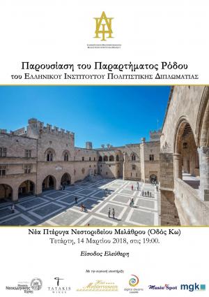 Την Τετάρτη 14 Μαρτίου 2018 και ώρα 19:00 θα πραγματοποιηθεί η επίσημη παρουσίαση του Ελληνικού Ινστιτούτου Πολιτιστικής Διπλωματίας στη Ρόδο. Η εκδήλωση θα πραγματοποιηθεί στη ...