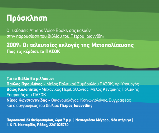 Παρουσίαση του βιβλίου του Πέτρου Ιωαννίδη "2009: Οι τελευταίες εκλογές της Μεταπολίτευσης" στη Ρόδο