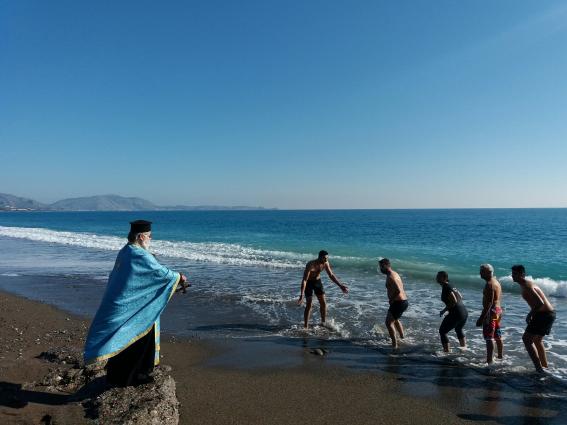 Στην κεντρική παραλία του Γενναδίου τελέστηκε ο αγιασμός των υδάτων με τη ρίψη του Τιμίου Σταυρού στη θάλασσα.