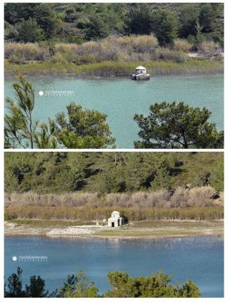 Το εκκλησάκι της Ζωοδόχου Πηγής βρίσκεται μέσα στο φράγμα και τα τελευταία χρόνια το χρησιμοποιώ σαν «υδροδείκτη» της στάθμης του νερού. Στη δεύτερη φωτογραφία που είναι ...