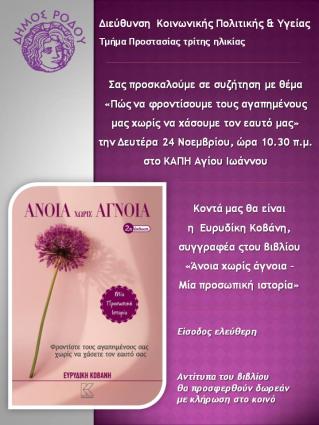 Το ΚΑΠΗ Δήμου Ρόδου διοργανώνει τη Δευτέρα 24 Νοεμβρίου, στις 10:30π.μ. ανοιχτή συζήτηση ...