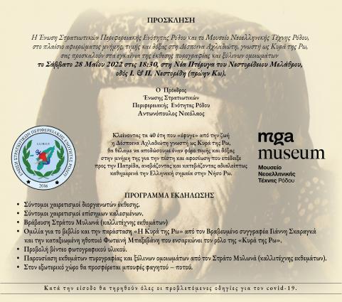 Η Ένωση Στρατιωτικών Περιφερειακής Ενότητας Ρόδου και το Μουσείο Νεοελληνικής Τέχνης Ρόδου, στο πλαίσιο αφιερώματος μνήμης, τιμής και δόξας στη Δέσποινα Αχλαδιώτη, γνωστή ...