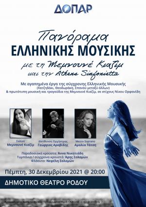 - Ο Δημοτικός Οργανισμός Πολιτισμού-Αθλητισμού Ρόδου παρουσιάζει τη μοναδική συναυλία με τίτλο "Πανόραμα Ελληνικής Μουσικής" με ...