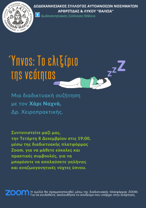 - Ο Δωδεκανησιακός Σύλλογος Αυτοάνοσων Νοσημάτων Αρθρίτιδας & Λύκου "ΘΑΛΕΙΑ" διοργανώνει διαδικτυακή συζήτηση με τον Χάρι ...