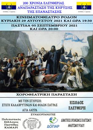 ΔΕΛΤΙΟ ΤΥΠΟΥ-“ Αναπαράσταση της κήρυξης της Επανάστασης του 1821 – Χοροθεατρική εκδήλωση από τον Πολιτιστικό Σύλλογο Παστίδας «Καμάρι» ”