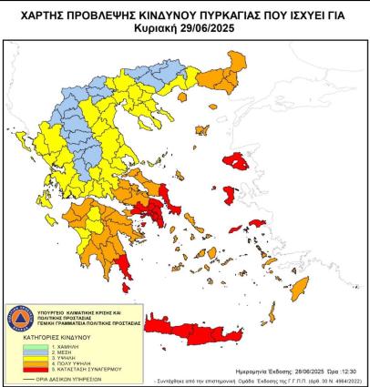 Κυριακή 29-6-2025: Θυελλώδεις άνεμοι-Υψηλές θερμοκρασίες