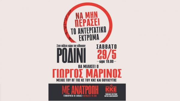- Εκδήλωση- ομιλία στον αύλειο χώρο του Ροδινιού το Σάββατο 29 Μαΐου και ώρα 19:00 με τον Γιώργο Μαρίνο, ...