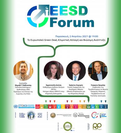 Tο Europe, Enterpreneurship & Sustainable Development Forum 2021 συνεχίζεται με δύο εξαιρετικές εκδηλώσεις "Πολιτισμός και Βιώσιμη Ανάπτυξη" την Τετάρτη, 31 Μαρτίου 2021, και "Ευρωπαϊκό Green Deal, ...