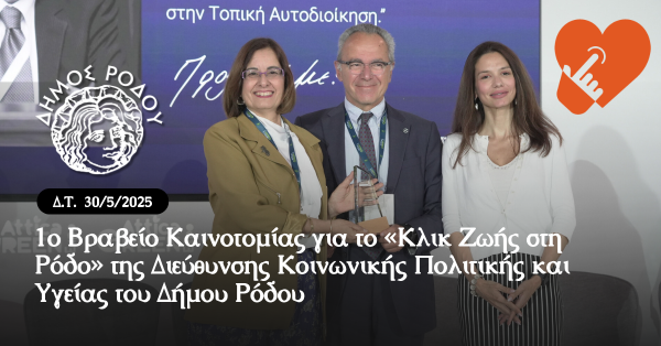 1ο Βραβείο Καινοτομίας για το «Κλικ Ζωής στη Ρόδο»