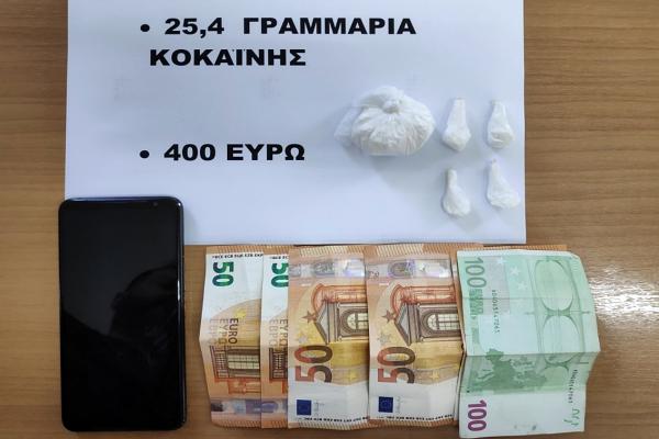 - Κατασχέθηκαν 25,4 γρ. κοκαΐνης, 400€ και κινητό τηλέφωνο