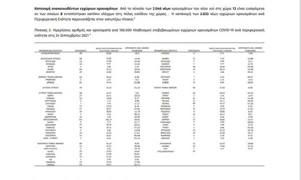 Η σημερινή ανακοίνωση του ΕΟΔΥ: «Τα νέα εργαστηριακά επιβεβαιωμένα κρούσματα της νόσου που καταγράφηκαν τις τελευταίες 24 ώρες είναι 2.046, εκ των οποίων 8 εντοπίστηκαν ...