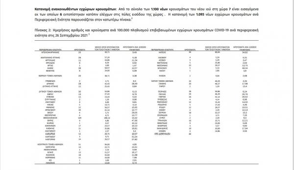 Η σημερινή ανακοίνωση του ΕΟΔΥ: «Τα νέα εργαστηριακά επιβεβαιωμένα κρούσματα της νόσου που καταγράφηκαν τις τελευταίες 24 ώρες είναι 1.100, εκ των οποίων 6 ...