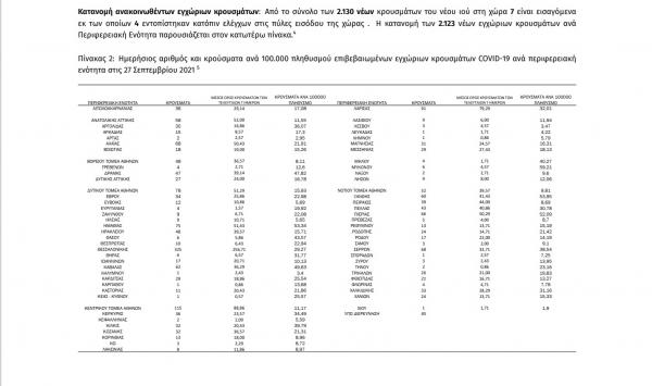Η σημερινη ανακοίνωση του ΕΟΔΥ: «τα νέα εργαστηριακά επιβεβαιωμένα κρούσματα της νόσου που καταγράφηκαν τις τελευταίες 24 ώρες είναι 2.130, εκ των οποίων 4 εντοπίστηκαν κατόπιν...
