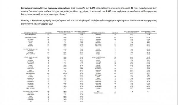 Η σημερινή ανακοίνωση του ΕΟΔΥ: «τα νέα εργαστηριακά επιβεβαιωμένα κρούσματα της νόσου που καταγράφηκαν τις τελευταίες 24 ώρες είναι 2.978, εκ των οποίων 7 εντοπίστηκαν...