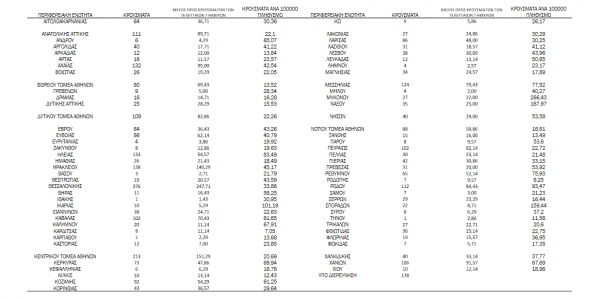 Η σημερινή ανακοίνωση του ΕΟΔΥ: «Τα νέα εργαστηριακά επιβεβαιωμένα κρούσματα της νόσου που καταγράφηκαν τις τελευταίες 24 ώρες είναι 3.625 , εκ των οποίων 16 εντοπίστηκαν ...