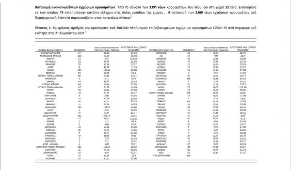 Η σημερινή ανακοίνωση του ΕΟΔΥ: Τα νέα εργαστηριακά επιβεβαιωμένα κρούσματα της νόσου που καταγράφηκαν τις τελευταίες 24 ώρες είναι 3.191, εκ των οποίων 19 ...