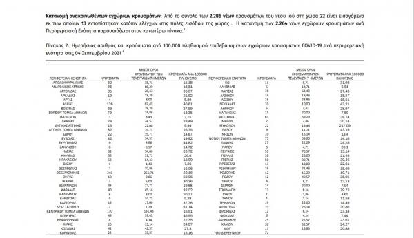 H σημερινή ανακοίνωση του ΕΟΔΥ: Τα νέα εργαστηριακά επιβεβαιωμένα κρούσματα της νόσου που καταγράφηκαν τις τελευταίες 24 ώρες είναι 2.286, εκ των οποίων 13 εντοπίστηκαν ...