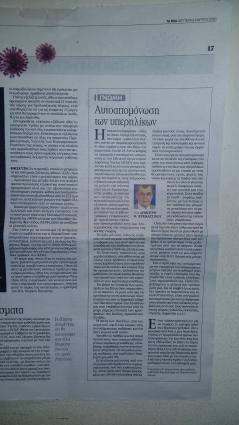 Αρθρο του καθηγητή καρδιολογίας Δημήτρη Κρεμαστινού στην εφημερίδα τα ΝΕΑ για τους υπερήλικους και τον κορονοιό